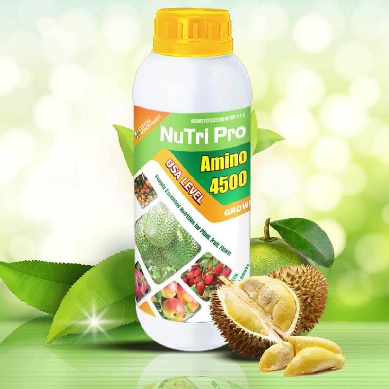 Đối với cây sầu riêng amino acid có tác dụng cực kỳ quan trọng. Amino acid là hợp phần cấu tạo nên protein và các enzim tham gia vào các phản ứng hóa học trong quá trình trao đổi chất. Vì vậy, amino acid sẽ giúp cây sầu riêng tăng trưởng một cách mạnh mẽ, do đó sẽ tăng năng suất quả cao và chất lượng quả tốt.
