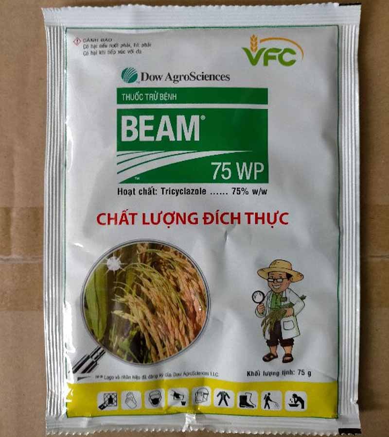 Beam 75WP là loại thuốc có khả năng lưu dẫn mạnh, nó có hiệu lực lâu và có khả năng ngăn chặn sự tấn công cũng như phát triển của nấm Pyricularia oryzae. Chính vì vậy thuốc Beam 75WP được sử dụng rộng rãi với mục đích ngăn ngừa, điều trị bệnh đạo ôn lá, đạo ôn cổ bông cho cây lúa.
