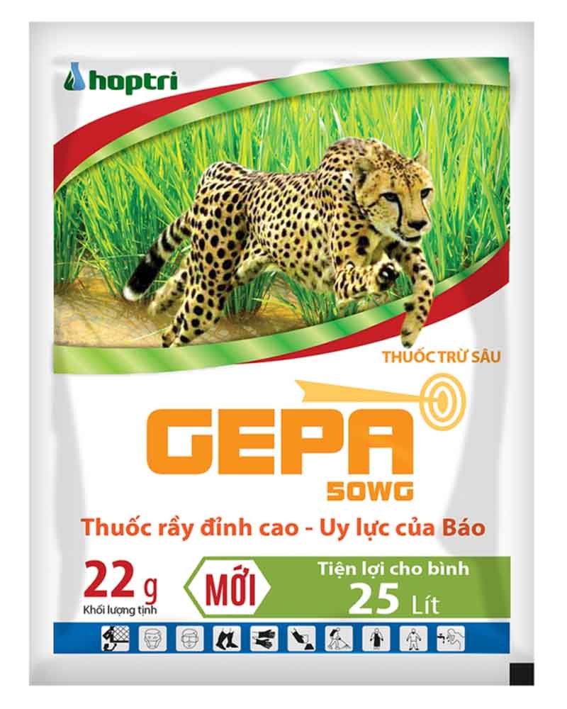 Thành phần chính của Gepa 50WG là Pymetrozine (50%) và một lượng nhỏ phụ gia (100%). Công dụng chính là phòng trừ rầy non mới nở và rầy trưởng thành. Ngoài ra thuốc còn có khả năng tiêu diệt các loại côn trùng kháng thuốc khác một cách có chọn lọc.