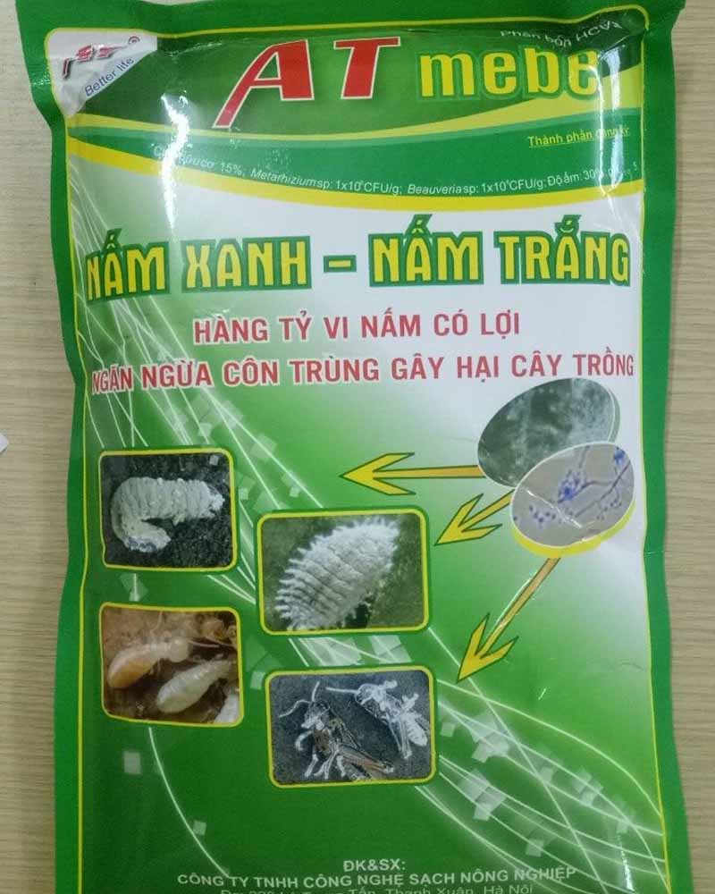 Thuốc trừ rầy trắng AT Mebe gồm 3 loại nấm: nấm trắng, nấm tím và nấm xanh. Sản phẩm AT Mebe cực kỳ an toàn, thân thiện với môi trường, do sử dụng nấm nên không cần cách ly sau khi phun.