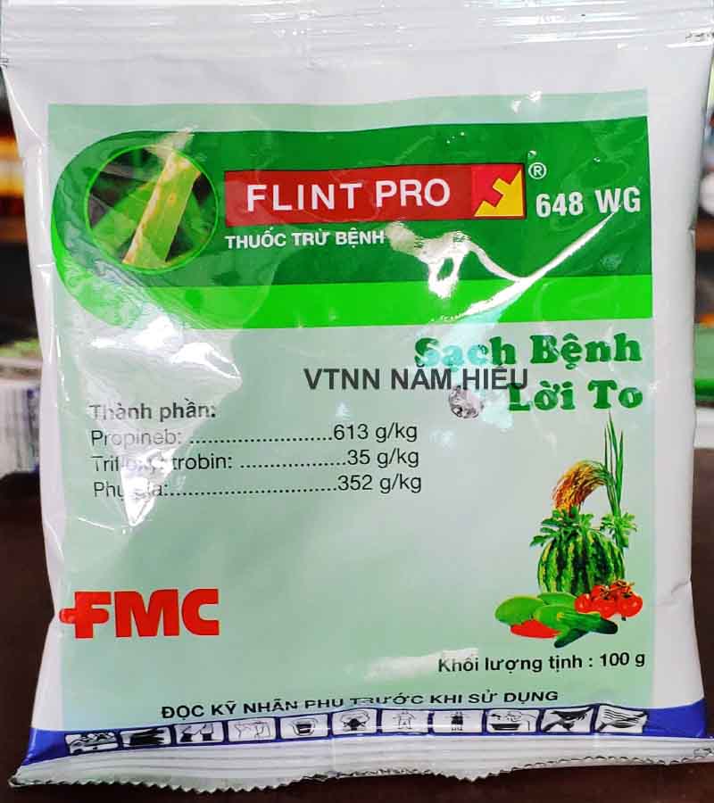 Flint pro 648WG chứa Propineb 613g / kg + Trifloxystrobin 35g / kg dùng để phòng và trị sâu bệnh hoặc các vấn đề cây trồng trong Nông nghiệp.