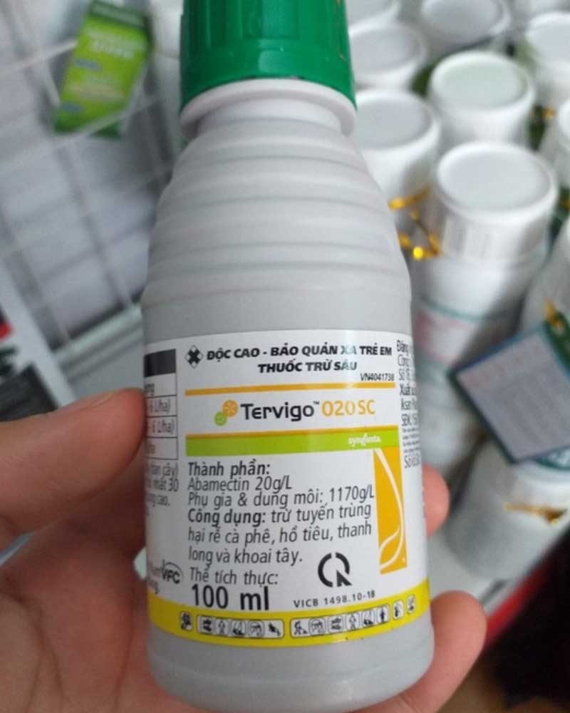 Tervigo 020SC là thuốc đặc trị tuyến trùng, chống thối mềm, sưng rễ, vàng lá. Hiệu quả diệt tuyến trùng kéo dài, tiết kiệm chi phí và bảo vệ môi trường. Thuốc trị tuyến trùng rễ Syngenta Tervigo 020SC chứa hoạt chất Abamectin được sử dụng để phòng ngừa và điều trị sâu bệnh hoặc các vấn đề cây trồng trong Nông nghiệp.