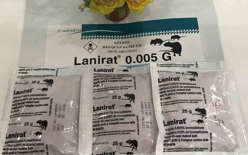 Thuốc diệt chuột sinh học Lanirat được làm từ mầm gạo Thụy Sĩ và được sản xuất dưới dạng hạt gạo tẩm thuốc. Sản phẩm này diệt được nhiều loại chuột chỉ trong một lần ăn như chuột cống, chuột chắt, chuột Nauy.